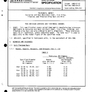 This specification covers established metric manufacturing tolerances applicable to corrosion and heat resistant steel, iron alloy, titanium, and titanium alloy bars and wire ordered to metric dimensions. These tolerances apply to all conditions, unless otherwise noted. The term “excl” is used to apply only to the higher figure of the specified range.