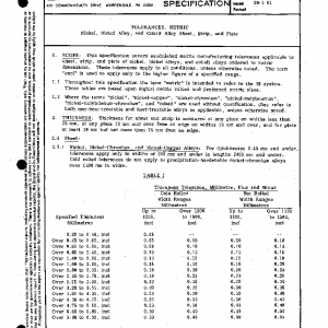 TOLERANCES, METRIC Nickel, Nickel Alloy, and Cobalt Alloy Sheet, Strip, and Plate