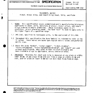 TOLERANCES, METRIC Nickel, Nickel Alloy, and Cobalt Alloy Sheet, Strip, and Plate