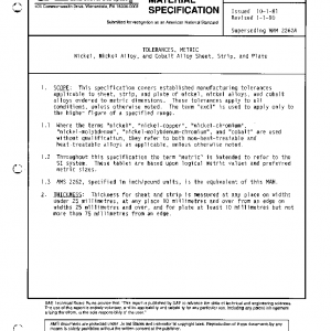 TOLERANCES, METRIC Nickel, Nickel Alloy, and Cobalt Alloy Sheet, Strip, and Plate