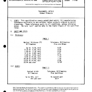 TOLERANCES, METRIC Rubber Products