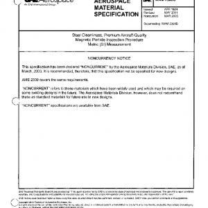 Steel Cleanliness, Premium Aircraft-Quality Magnetic Particle Inspection Procedure Metric (SI) Measurement(NONCURRENT Mar 2003)