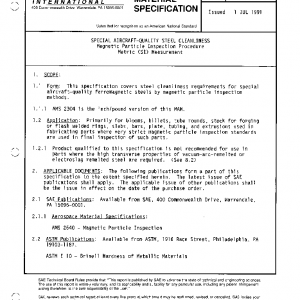 This specification covers steel cleanliness requirements for special aircraft-quality ferromagnetic steels by magnetic particle inspection methods.