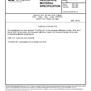 This specification covers an aluminum alloy in the form of die forgings and hand forgings procured to metric (SI) units.AMS 4131 is the inch/pound verison of this MAM.These forgings have been used typically for parts requiring a combination of good strength and resistance to stress-corrosion cracking, but usage is not limited to such applications.