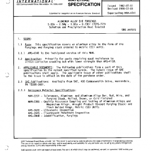 ALUMINUM ALLOY DIE FORGINGS 5.6Zn – 2.5Mg – 1.6Cu – 0.23Cr (7075-T73) Solution and Precipitation Heat Treated