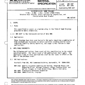 ALUMINUM ALLOY, HAND FORGINGS 7.7Zn – 2.4Mg – 1.6Cu – 0.16Cr (7049-T7352) Solution Heat Treated, Stress Relieved by Compression, and Precipitation Heat Treated