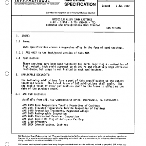 This specification covers a magnesium alloy in the form of sand castings.
