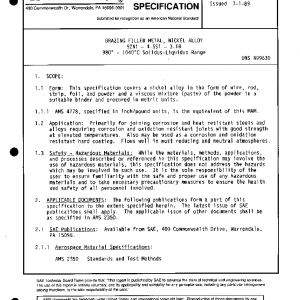 This specification covers a nickel alloy in the form of wire, rod, strip, foil, and powder and a viscous mixture (paste) of the powder in a suitable binder and procured in metric units.