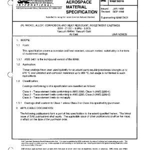 This specification covers a corrosion and heat resistant, vacuum melted, nickel alloy in the form of investment castings.