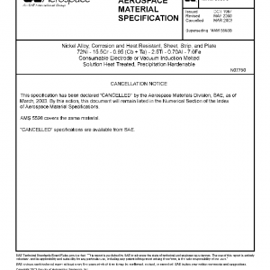 Nickel Alloy, Corrosion and Heat Resistant, Sheet, Strip, and Plate 72ni 15.5cr 0.95(Cb + Ta) 2.5ti 0.70al 7.0fe Consumable Electrode Or Vacuum Induction Melted Solution Heat Treated, Precipitation Hardenable(Cancelled Mar 2003)