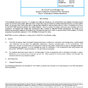 This SAE Aerospace Recommended Practice describes a method for conducting room temperature, contaminated fuel, endurance testing when the applicable specification requires nonrecirculation of the contaminants. The objective of the test is to determine the resistance of engine fuel system components to wear or damage caused by contaminated fuel operation. It is not intended as a test for verification of the component’s filter performance and service life. ARP1827 is recommended for filter performance evaluation.