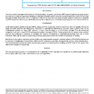 This recommended practice describes how to toughen a new or existing PNT system with the installation of inline GPS/GNSS jamming protection.