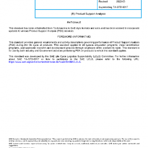 This standard establishes general principles and descriptions of activities which, when performed in a logical and iterative nature, comprise the Product Support Analysis (PSA) process.