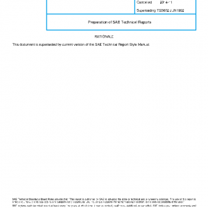 Preparation of SAE Technical Reports(Cancelled Nov 2014)