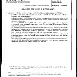This SAE Standard provides basic information on the International System of Units, abbreviated SI in all languages, and its application in engineering practice and measurement unit usage.
