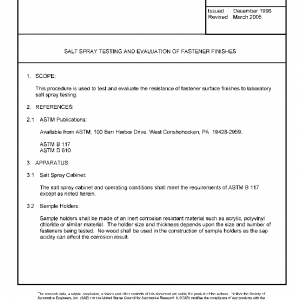 This procedure is used to test and evaluate the resistance of fastener surface finishes to laboratory salt spray testing.