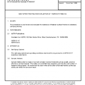 This procedure is used to test and evaluate the resistance of fastener surface finishes to laboratory salt spray testing.