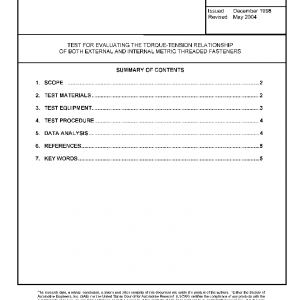 TEST FOR EVALUATING THE TORQUE-TENSION RELATIONSHIP OF BOTH EXTERNAL AND INTERNAL METRIC THREADED FASTENERS