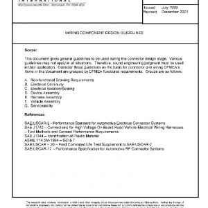 This document gives general guidelines to be used during the connector design stage. Various guidelines may not apply in all situations. Therefore, sound engineering judgment must be used in their application. Consider these guidelines as the basis for connector and wiring DFMEA’s. Items in this document are grouped by DFMEA functional requirements. Groups are as follows:
