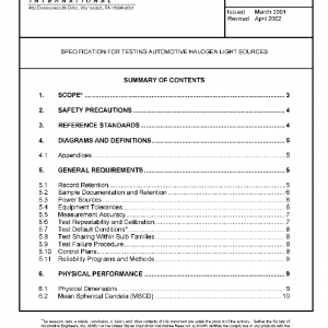 SPECIFICATION FOR TESTING AUTOMOTIVE HALOGEN LIGHT SOURCES