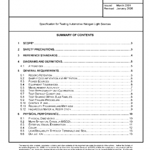 The procedures contained in this specification cover the laboratory testing of replaceable halogen incandescent bulbs for use in automotive road illumination. The following tests are intended to be run under the following conditions.