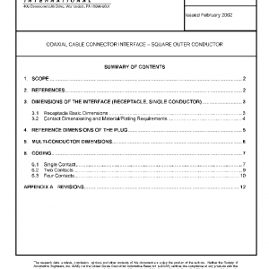 This radio frequency (RF) connector interface specification is suited for unsealed automobile applications up to 2 GHz. Dimensional requirements are specified in this document to ensure interchangeability. This RF connector interface specification is intended for in-line, board mount, device mount, straight or angled applications. Performance requirements are specified in SAE/USCAR-2, and in SAE/USCAR-17.