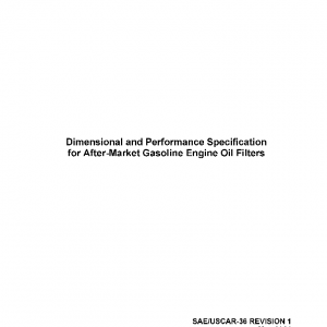 This specification defines the dimensional and performance requirements for aftermarket spin-on oil filters intended for use on gasoline engines. Filters meeting this specification may also be suitable for use on some diesel applications.