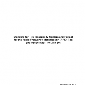 This standard describes a requirement for automotive tire traceability. It includes a definition of the RFID tag and the associated tire data set that can be accessed using the RFID tag as an identifier. The standard describes a unique identification and the associated data set for each tire produced by the tire fabricator. This data will either be provided or transmitted at the time of shipment to retailers, wholesalers or original equipment vehicle manufacturers. Tire identification code and data may be used for error proofing, determining the tire specifications or supporting any inquiries that occur for the duration of its automotive life.